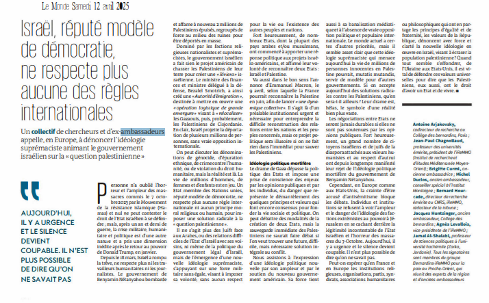 LE MONDE Israel Palestine Groupe Bernardins Iremmo 0 By IT Manager on April 12, 2025 REVUE DES IDÉES Share Facebook Email WhatsApp 25 04 12 LE MONDE Israel Palestine Groupe Bernardins IremmoDownload Source : Bernard HOURCADE