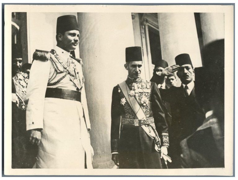 Farouk, né le 11 février 1920 au Caire et mort le 18 mars 1965 à Rome, est l’avant-dernier Roi d’Egypte et le dixième souverain de la dynastie de Méhémet Ali. Il succède à son père Fouad 1er, le 28 avril 1936, et règne jusqu’au 26 juillet 1952, date à laquelle il est renversé, puis remplacé par son fils Fouad II. Il meurt treize ans plus tard en exil en Italie. Sa sœur, Faouzia Fouad, est la première épouse du dernier Chah d’Iran, Mohammad Reza Pahlavi. –Fin de la Note.