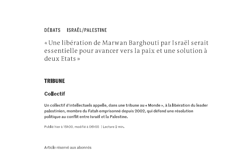 Home»madaniya»Tribune pour la libération de Marwane Barghouti.