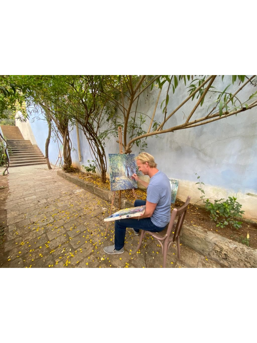 «Je suis venu au Liban pour la première fois en 2006, sollicité par une famille libanaise rencontrée à Londres qui m’a demandé de faire un tableau de leur maison de montagne. Dès que j’ai posé le pied au Liban, je suis immédiatement tombé sous le charme de ce pays. J’ai du mal à expliquer pourquoi, mais je me suis senti comme chez moi et j’ai su que j’allais revenir.»