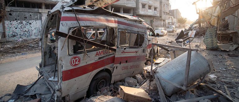 • Ambulance détruite à Shijaiyah (Bande de Gaza) 6/08/14.  http://en.wikipedia.org/wiki/File:Destroyed_ambulance_in_the_CIty_of_Shijaiyah_in_the_Gaza_Strip.jpg