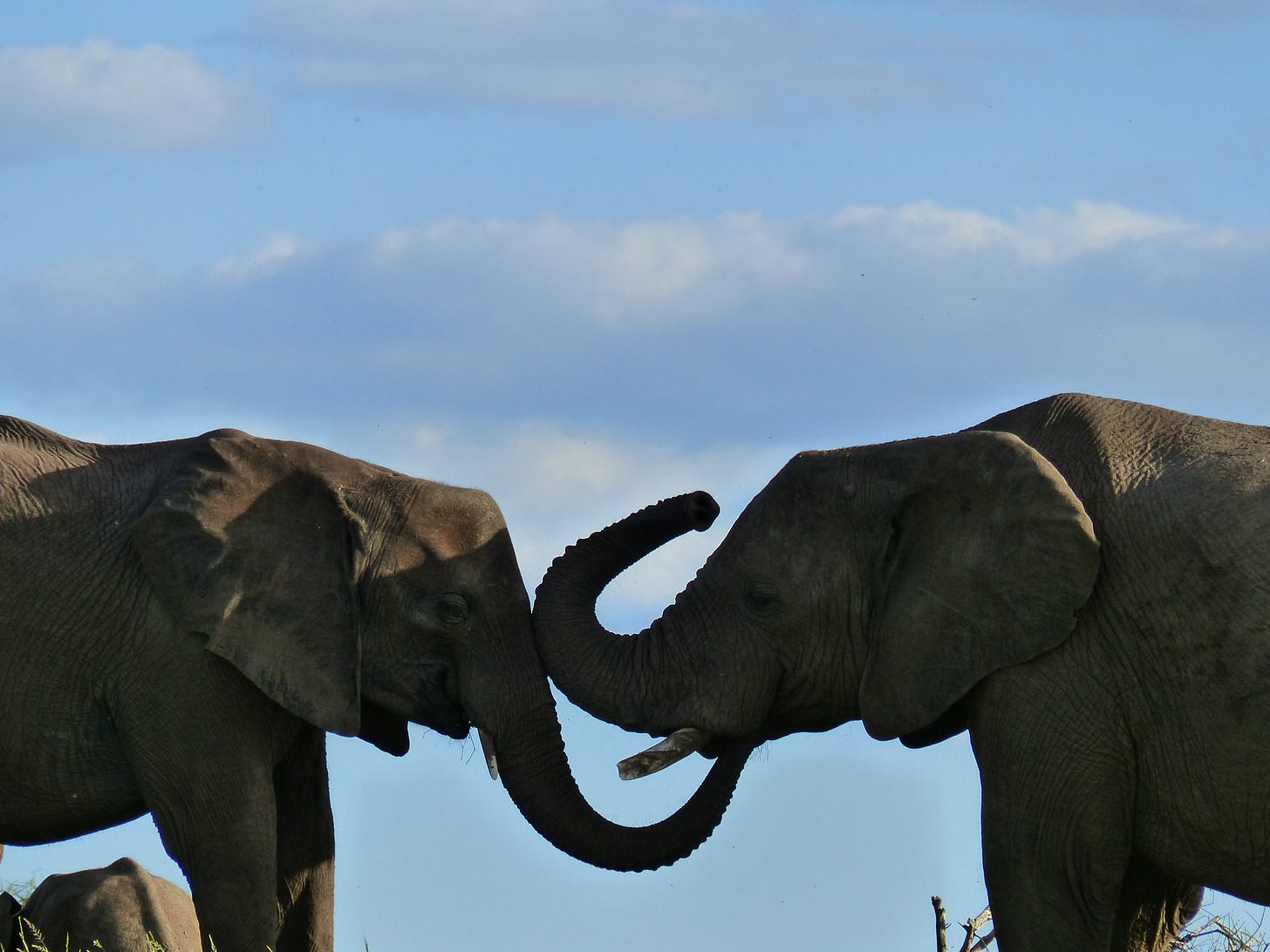 Here is something else that seems relevant. Elephants are not an aggressive species though they will protect their young fiercely. [I watched a matriarch turn suddenly with a deafening trumpet as if to stomp on the young Lion who was thinking he could grab the baby standing alongside her back legs – the Lion was gone in a flash]. However, young bull Elephants sometimes go rogue and attack other animals, like Rhinos, sexually molesting them or trying to kill them. This occurs when the Elephant situation resembles overcrowded, poverty stricken, fatherless urban areas where human young men go rogue in the same ways. The remedy that works is to remove the young bull from the territory where food and habitat is threatened, poaching is rampant and the patriarchs and matriarchs are being slaughtered, and place them in the company of a pack of remaining bull Elephants who proceed to father and educate these young ones who become part of the group and learn how to be Elephants again. In other words, the society that we have created, the wilderness we have decimated become desperate toxic systems. The toxicity is of our creation. In the wild restoring relationship, allowing the existence of the field in which it usually flourishes, is the answer. The wild is by its nature a field of relationships.